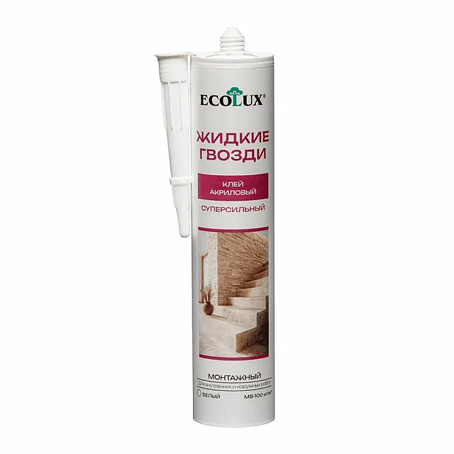 Суперсильный монтажный клей для внутренних и наружных работ на базе акриловой дисперсии. Не подходит для приклеивания зеркал, полиэтилена, пропилена, тефлона, силикона.