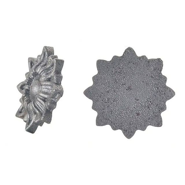 Применяется в изготовлении изделий художественной ковки, для декорирования оград, ворот, оконных решеток, перил и козырьков. Готовые штучные элементы холодной ковки соединяются в композицию сваркой. Для защиты от внешних воздействий декор после установки следует покрыть защитным составом т.к. поверхность цветка не обработана. Декоративные цветы прекрасно сочетаются с листьями и коваными кручеными элементами.