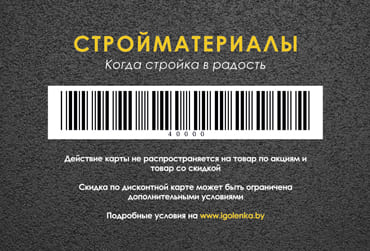 - Скидки по картам НЕ распространяются на изделия Лидского ЖБИ, мебель, газосиликатные блоки, железобетонные изделия, цемент, табак, гипсокартон, поддоны и алкогольную продукцию